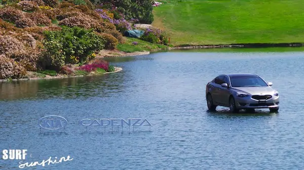 Aside from all the top notch action going on around us, it was also pretty hard to miss the brand new Kia Cadenza strategically placed in eye catching locations throughout the course…like floating on water, for instance.