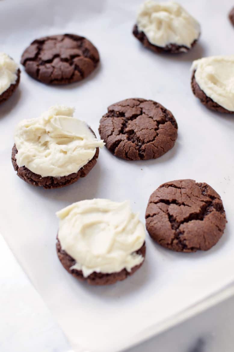 When ready, spread a generous amount of frosting (or even ice cream!) on half of the cookies.