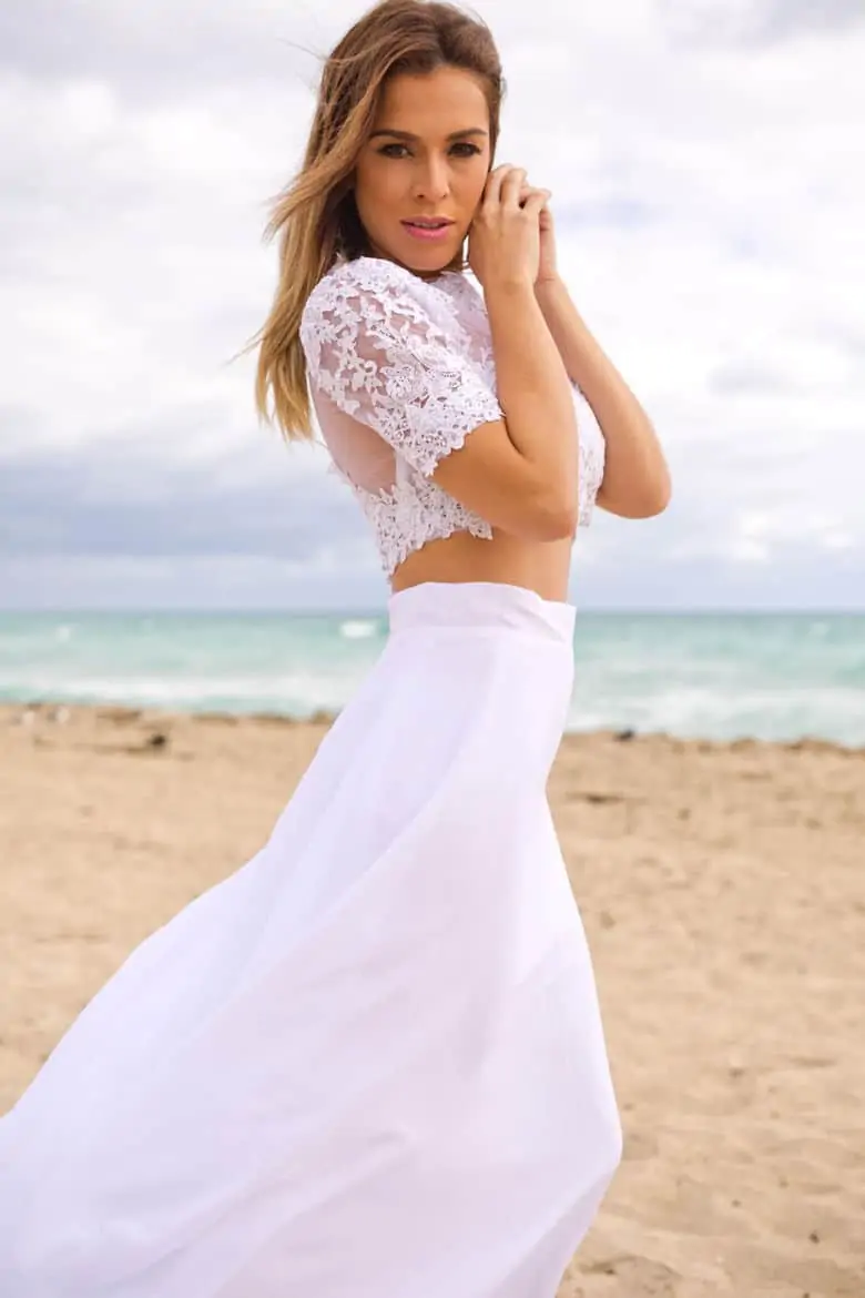 If you want to go completely away from a “traditional” dress, you might like this two piece design from Beach Bridal Blisss.