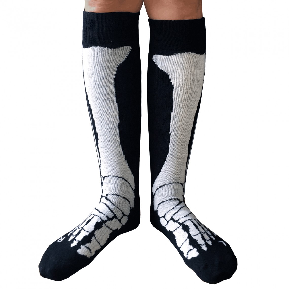 These black knee high X-Ray Skeleton socks have a white X-ray view of your skeleton foot and leg bones, down to your toes on a black background and are another must have for you Halloween sock collection.
